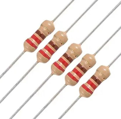 These resistors feature a standard axial lead design, allowing easy insertion into breadboards, IC sockets, and printed circuit boards, making them convenient for both prototyping and permanent soldered assemblies. Manufactured with high-quality materials, the resistors offer stable resistance, low electrical noise, and dependable performance over a wide range of operating conditions. The compact size allows for efficient use of space in circuit layouts while maintaining strong mechanical and electrical connections. Clear color-coded bands on each resistor enable quick and accurate identification of resistance values, helping reduce errors during assembly and troubleshooting.