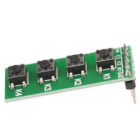 This switch module is commonly used with microcontrollers such as Arduino, ESP8266, ESP32, and other development boards, as well as in DIY electronics, robotics, and educational projects. It features standard pin spacing, which allows easy connection to breadboards or direct soldering onto PCBs. The durable buttons are designed to withstand repeated pressing, ensuring long-term reliability during regular use. Due to its compact size and simple interface, the 4 key push button switch is widely used in control panels, menu systems, game controllers, and embedded system applications where multiple input commands are needed in a neat and organized layout.