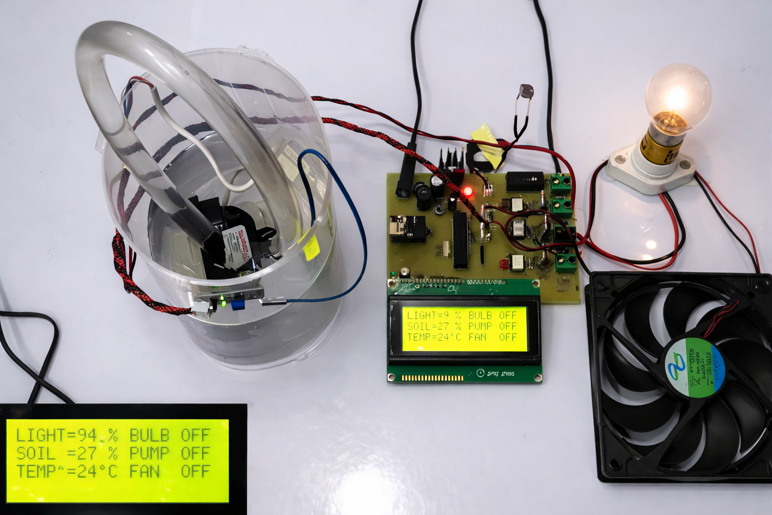 is an intelligent and automated project designed to monitor and regulate environmental conditions inside a greenhouse for optimal plant growth. The system integrates sensors to continuously measure key parameters such as temperature, humidity, soil moisture, and light intensity. Based on the sensor readings, a microcontroller or embedded system controls devices like water pumps for irrigation, fans or heaters for temperature regulation, and lights for proper illumination. This ensures that plants receive ideal growing conditions at all times, improving crop yield and quality while minimizing manual intervention. The system also promotes resource efficiency by reducing unnecessary water and energy consumption through precise, automated control. With real-time monitoring, automated response, and a user-friendly interface, this project is suitable for educational demonstrations, research in smart agriculture, and practical applications in modern greenhouse management.