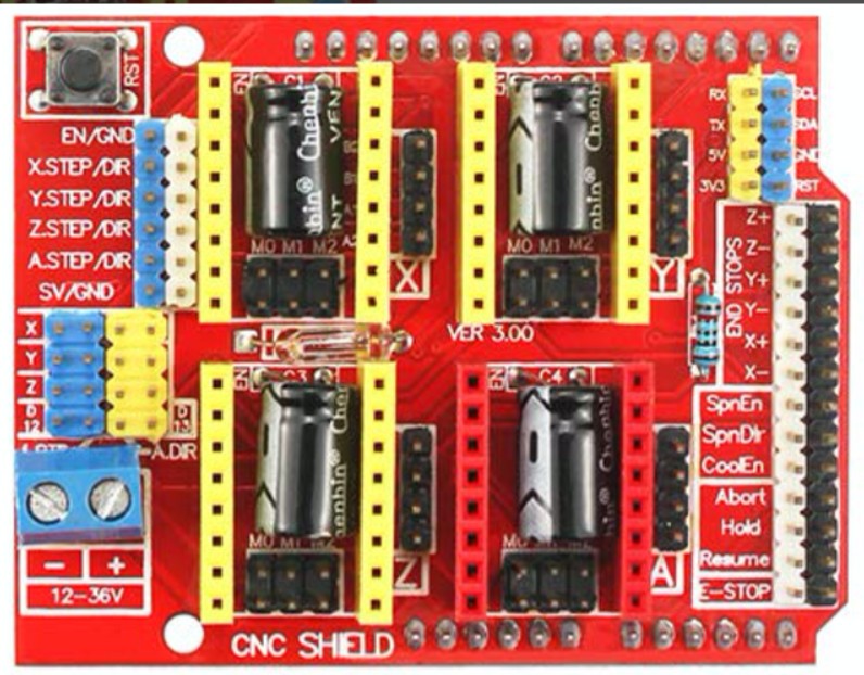 supports up to 4 stepper motor drivers (x, y, z, a axes)